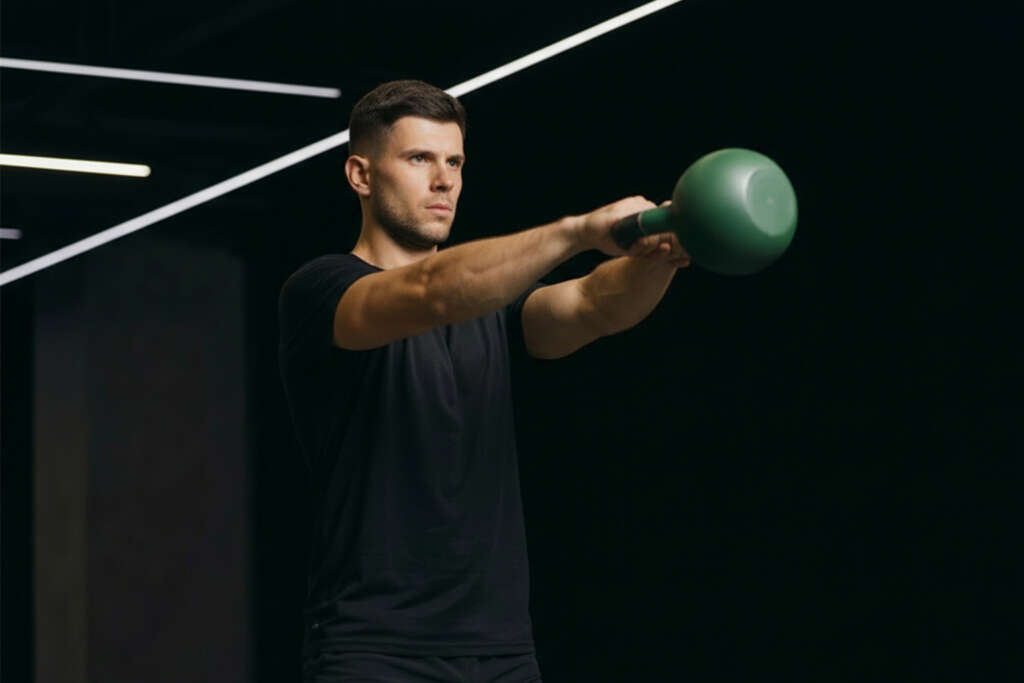 - Estación 1: Fuerza con mancuernas y kettlebells.